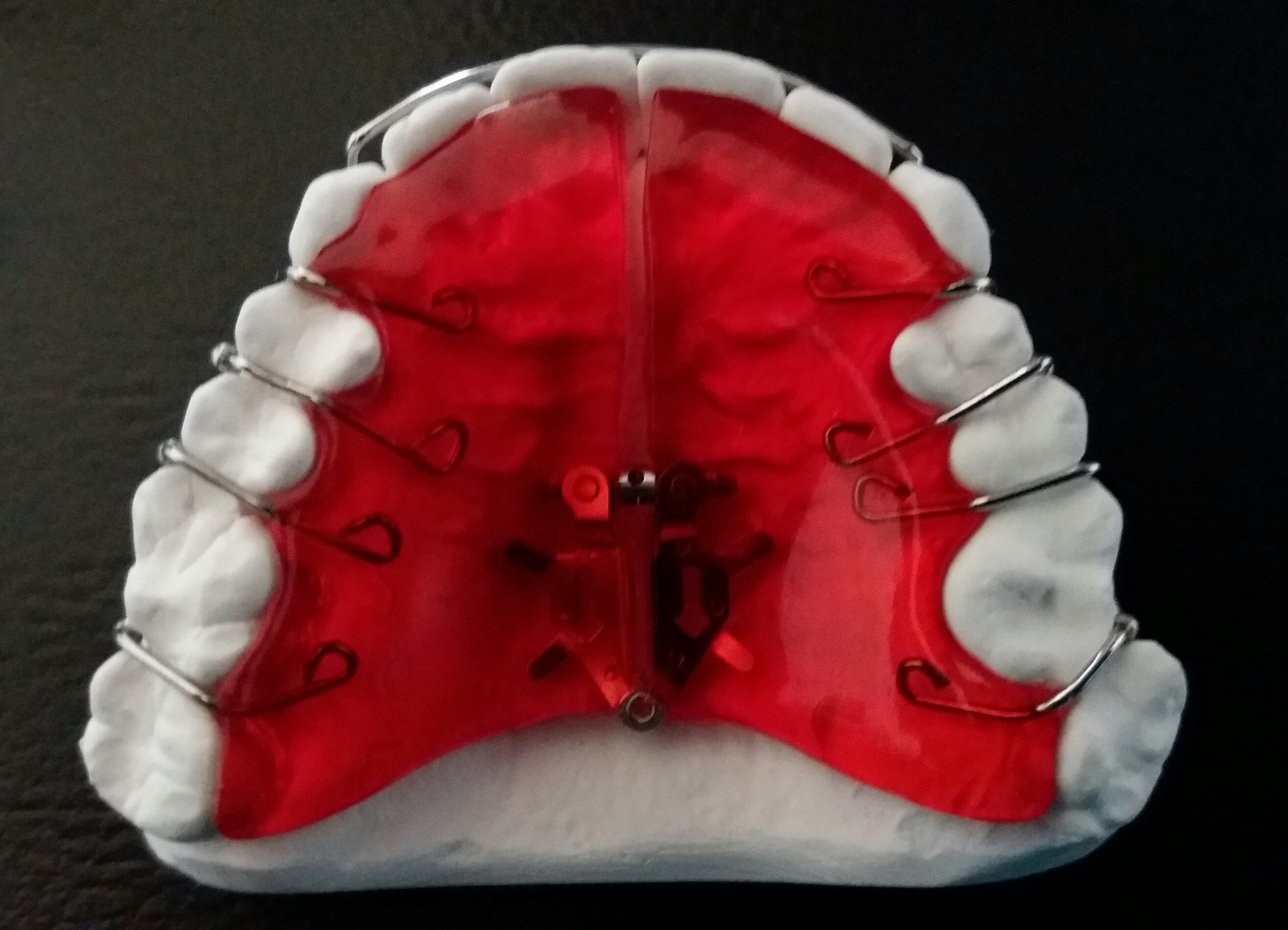 Fächerdehnschraube Die Fächerdehnschraube bewirkt eine verstärkte Dehnung in bestimmten Bereichen des Oberkiefers. Sie wird häufig zur Dehnung bei Lippen-Kiefer-Gaumenspalt-Patienten eingesetzt. – anteriore Dehnung (siehe Bilder) – posteriore Dehnung (Schraube wird umgekehrt in die OK-Platte eingearbeitet) – exzentrische Dehnung (Schraube wird schräg in die OK-Platte eingearbeitet) [Zeige Vorschaubilder] 2017-03-04