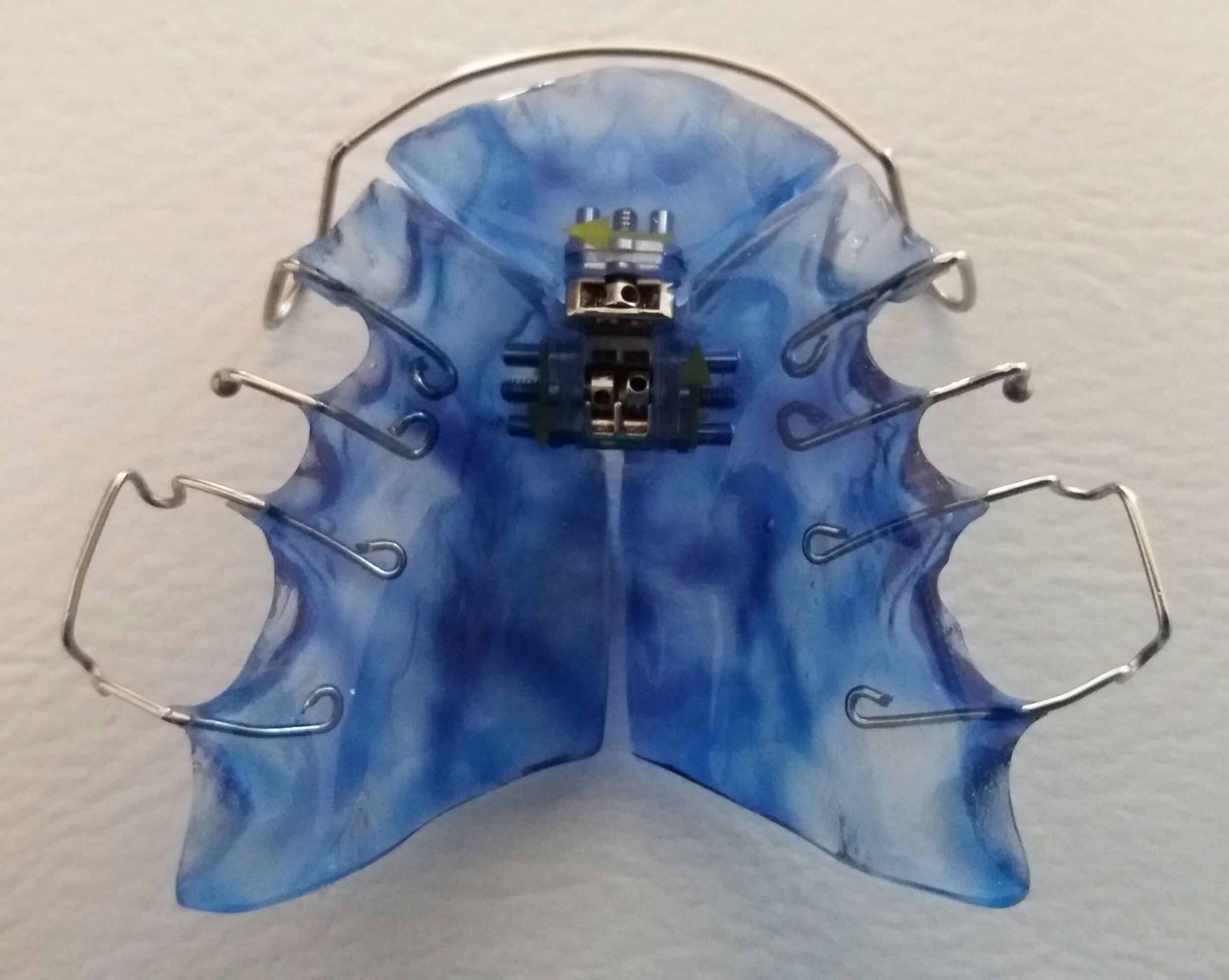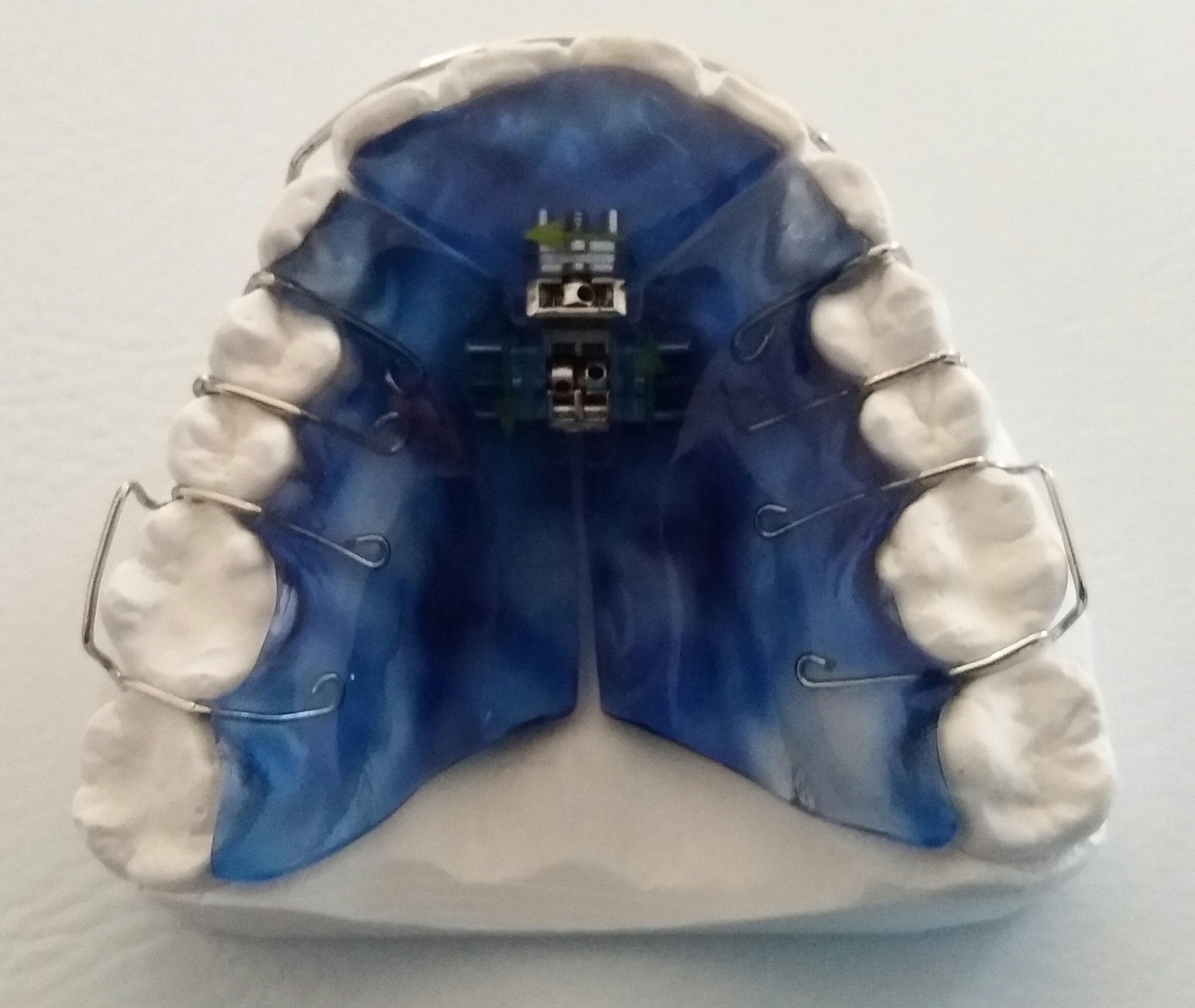 Beim Einbau einer Mehrsektorenschraube nach Bertoni in eine Oberkieferplatte, wird der Zahnbogen sowohl in sagittaler als auch in transversaler Richtung erweitert.